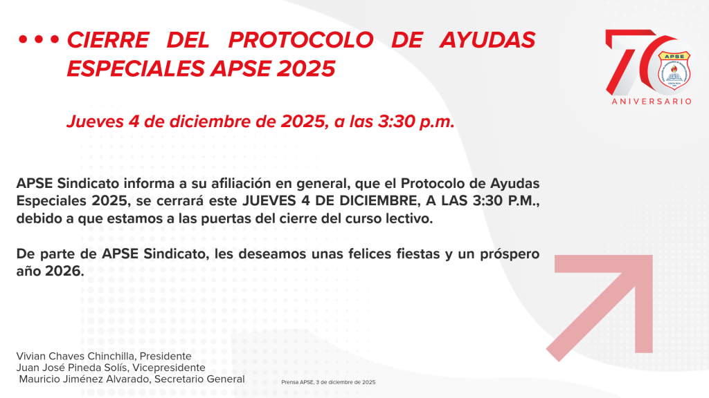 3. La persona interesada debe emitir una nota dirigida a la APSE para tramitar su ayuda y adjuntar todos los requisitos, esta carta detallará los hechos ocurridos, el nombre y cédula del solicitante (adjuntar copia de cédula) y deberá venir firmada ya sea por el coordinador regional o el presidente de base, y por supuesto firmada por el solicitante que requiere la ayuda.